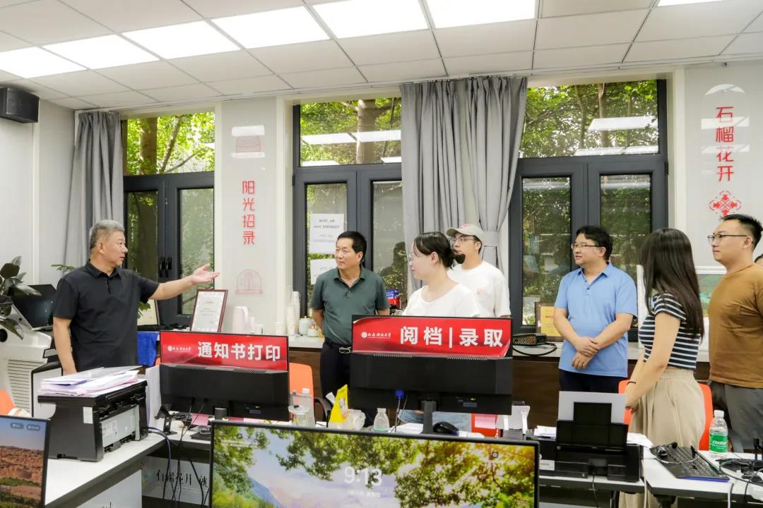 7月19日上午,校长邓军,校党委副书记、纪委书记、省纪委监委驻校纪检监察组组长沙德忠,副校长张传伟一行赴本科招生录取现场关心慰问工作人员。邓军对招生工作人员的辛勤付出给予肯定,并就做好2024年本科招生录取工作提出指导意见和工作要求。他强调,招生工作政策性、纪律性强,责任重大,社会关注度高,要进一步提高信息化程度,不断更新和完善现有的招生信息平台,确保其功能全面、操作便捷、安全可靠。