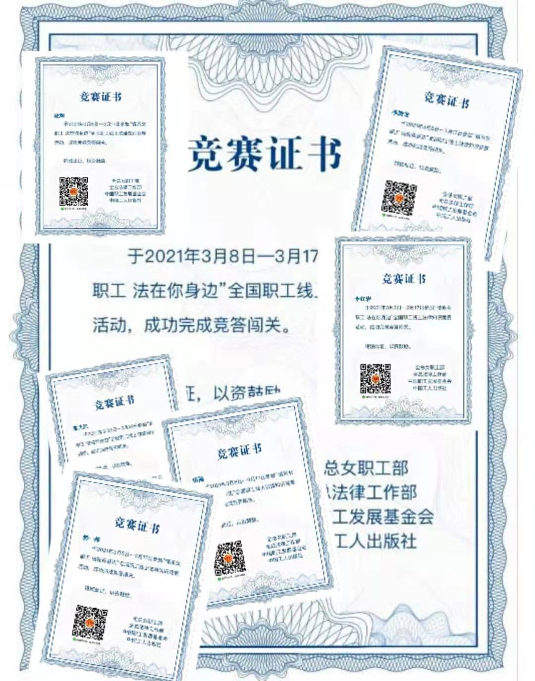 此次活动不仅增强了职工学习法律法规的积极性,并且进一步提高了职工的法律意识和维权意识。