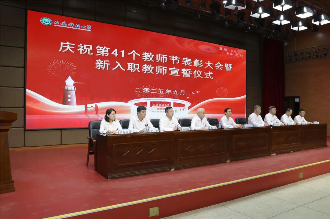 各单位、各部门党政主要负责人,受表彰的先进集体和优秀个人代表、从教30年教职工代表、2025年全体新入职教师、离退休人员代表、教师代表、学生代表参加大会。