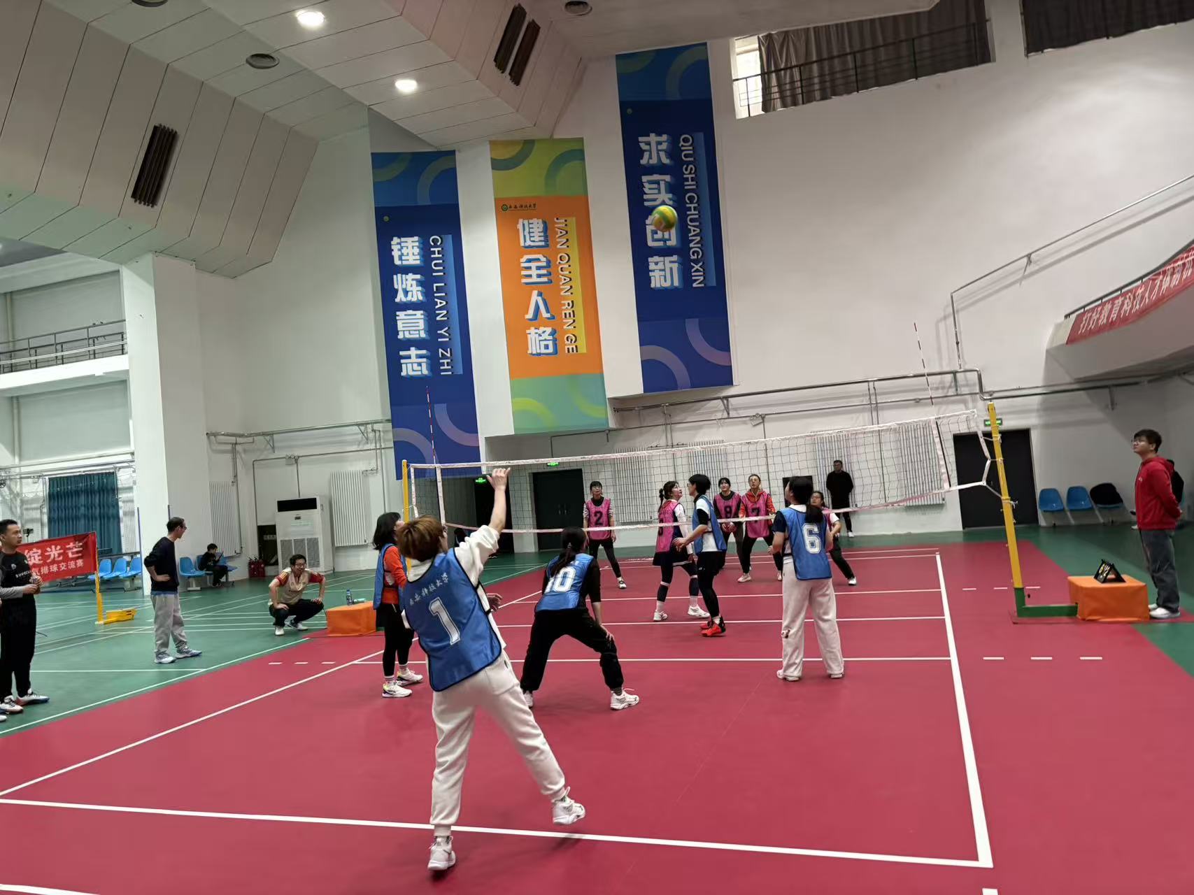 游艺赛的热身后,活动进入了更加精彩的“气排球对抗赛”环节。各组队伍轮番上阵,展开了多场友谊赛的较量。赛场上,女教职工们精神饱满,奋力拼搏,发球、接球、扣杀、拦网,每一次精彩的配合与得分都引来阵阵掌声与喝彩。活动现场,多位男教职工在此次活动中主动承担起了裁判与后勤服务工作,他们公正执裁、热心服务,保障了比赛的顺利进行,也用实际行动表达了对女同事们的节日支持与祝福。