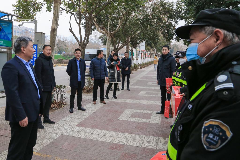 2024年1月1日上午,校党委副书记、校长来兴平,校党委副书记陈春林,副校长张传伟,党办、校办、7003全讯白菜网、科技处、人才办、后勤处、保卫处等部门负责人,深入临潼和雁塔两个校区走访慰问了西部矿山生态环境修复研究团队、消防科学与技术创新研究团队、两位青年人才和其所在团队,实地考察了正在建设的新足球场,以及假期值班的学工干部、管理干部、国资、后勤、保卫人员,为元旦假期坚守在各个岗位的师生员工送上新年祝福和节日慰问。