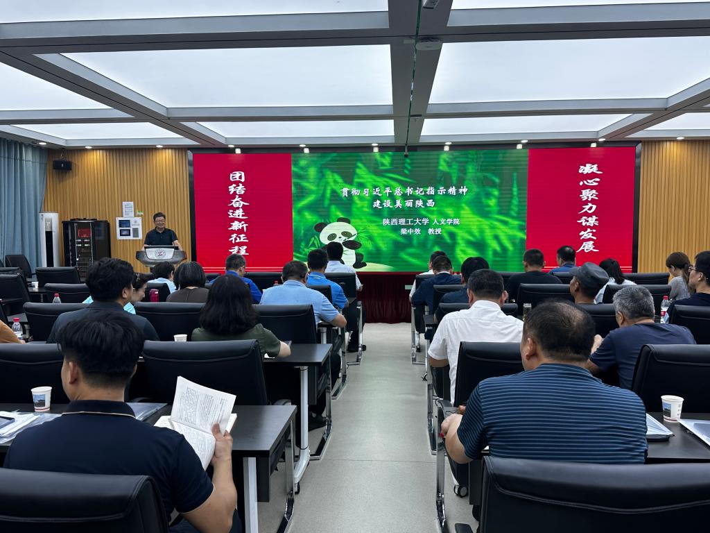 陕西理工大学人文学院教授、汉中市博物馆名誉馆长、陕南发展研究院常务副院长、汉文化研究院常务副院长梁中效传达学习了习近平总书记来汉中考察时的重要指示精神,围绕学习贯彻习近平总书记重要指示精神、中华文明的历史地位、陕西文化的战略地位、美丽陕南的发展前景、汉中历史与发展蓝图五个部分,讲述了汉中丰厚的历史文化底蕴、独特的地理区位优势、多样的自然生态资源,深刻阐述了发挥文化优势、坚定文化自信的重大意义。