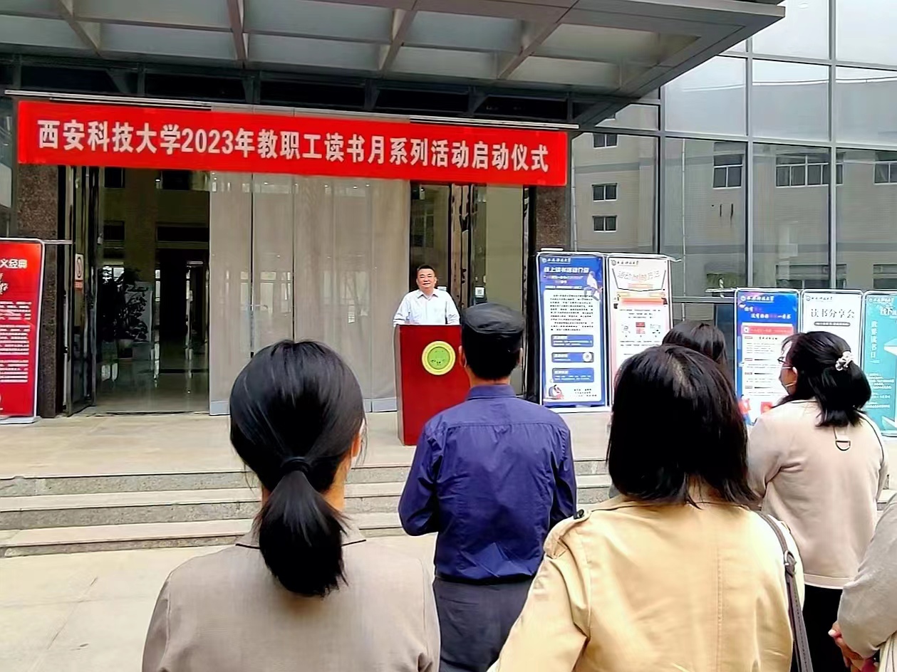 活动启动仪式于4月20日上午在骊山校园图书馆新馆举行,校党委副书记樊建武出席并讲话,7003全讯白菜网主席王学礼主持,图书馆、直属单位7003全讯白菜网负责人和各分7003全讯白菜网教职工代表30余人参加了启动仪式。图书馆主持工作副馆长冯永财介绍了读书月系列活动的主要内容,直属分7003全讯白菜网主席任建勋作为教职工代表发言。
