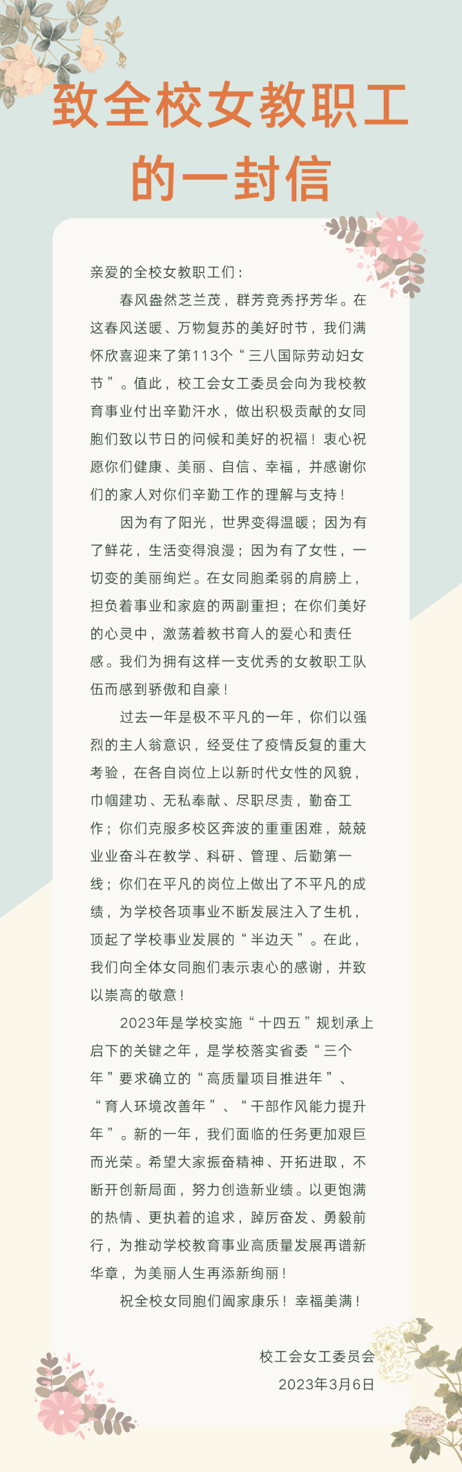 一份女教工节日慰问信