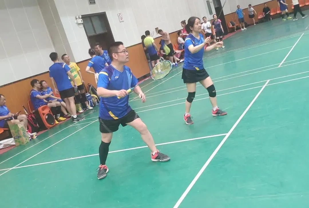 比赛现场,各代表队斗志昂扬,气氛紧张激烈。平日里,在讲台前认真为学生授课的教职工化身成为运动健儿。每个队员团结一致,奋力拼搏,扣杀,轻吊、上网跟进扑扣,后场紧密防守,一招一式展示了教职工的不凡球技。