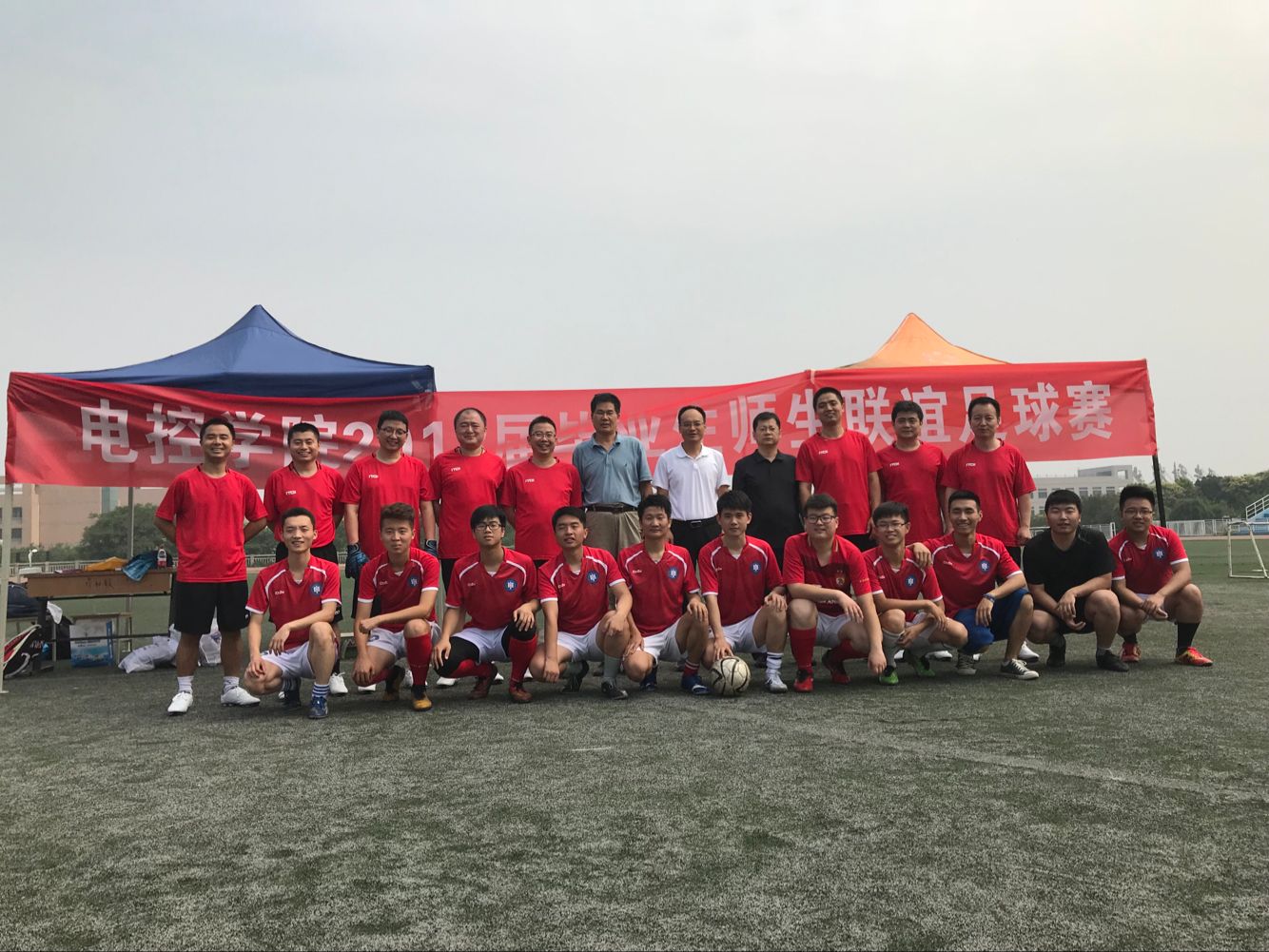 6月20上午在临潼校区体育场电控学院分7003全讯白菜网举行了教职工与电控学院2018届毕业生联谊足球赛,以此加深老师与同学间的情感,送别即将离校的2018届毕业生。