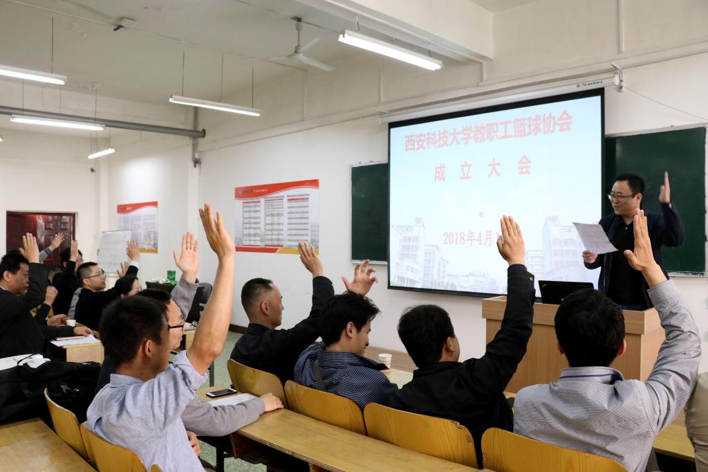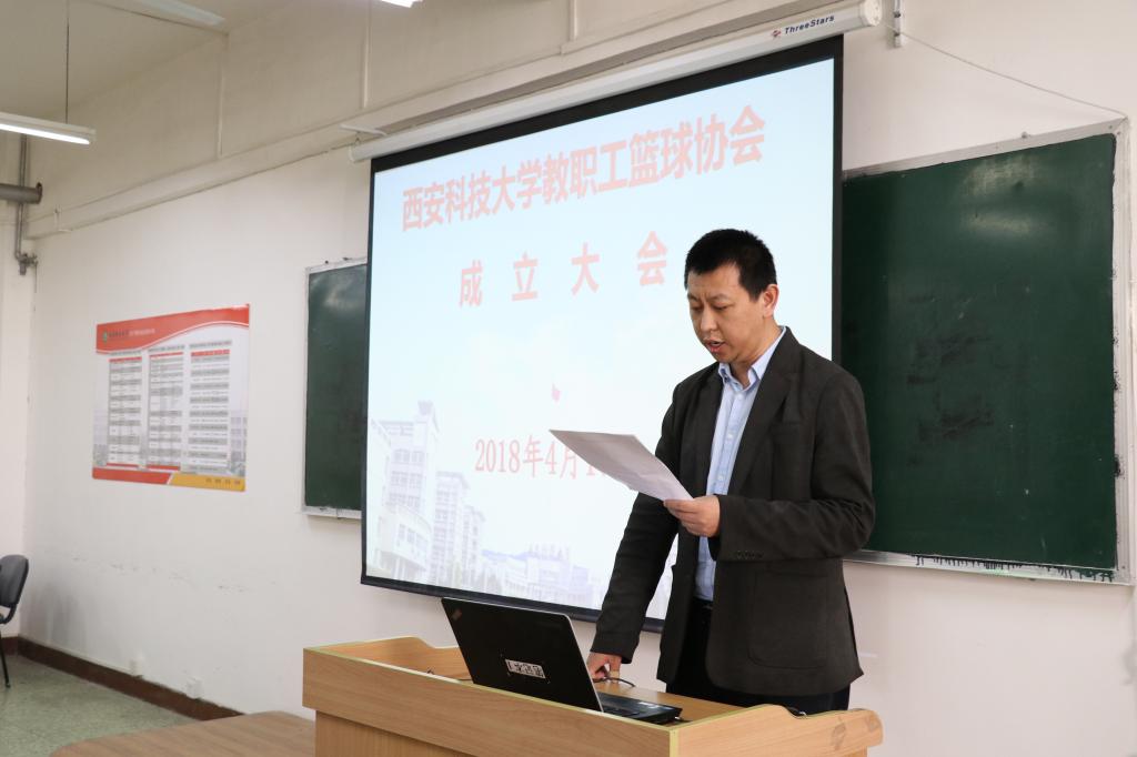 2018年4月17日中午,白菜网大全论坛教职工篮球协会在临潼校区骊山校园三号教学楼会议室正式成立。