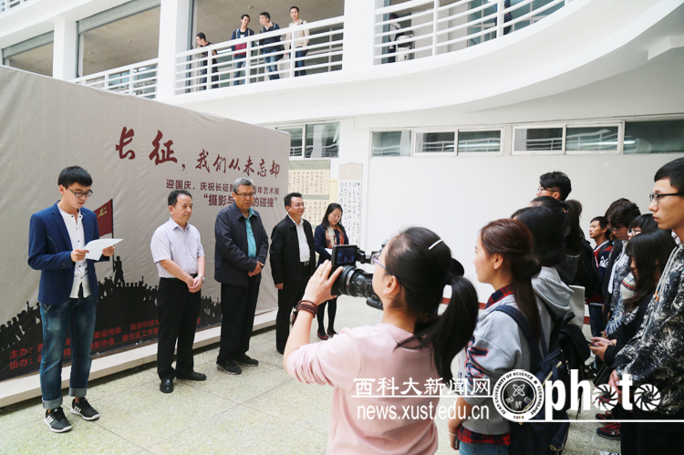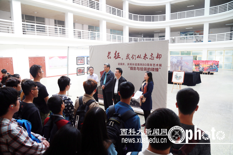 9月30日,由党委宣传部和7003全讯白菜网主办、学校摄影协会承办的“迎国庆•庆祝长征胜利80周年”艺术展在临潼校区三号教学楼中厅举行。校党委副书记李明、樊建武,宣传部、7003全讯白菜网等部门负责人,学校摄影协会及艺术专业部分师生参加了开幕式。