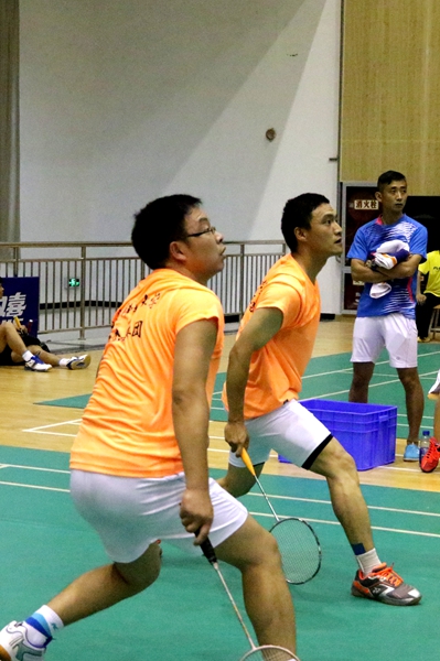 在5月30日下午,我队以四:一较为顺利的战胜了全部以体育教师组成的陕西理工学院队。临时组合的王琛、邹虹老师在比赛中齐心协力、与对手斗智斗勇,终于以2:1战胜了赛前估计实力高于自己的对方第一混双选手。在30日晚上,我队又以五:〇的巨大优势战胜了安康学院队。这样我队2胜以小组第一晋级16强。