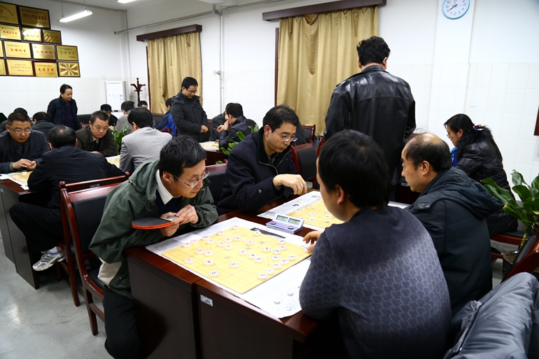12月4日晚,象棋赛首先上演。30余象棋爱好者总共进行了7轮快棋角逐。最后李强老师获得冠军,董耀武、刘敏学丶何青峰丶曹根牛、朱宁洪丶胡晓东丶邢书宝等分获第二至第八名。
