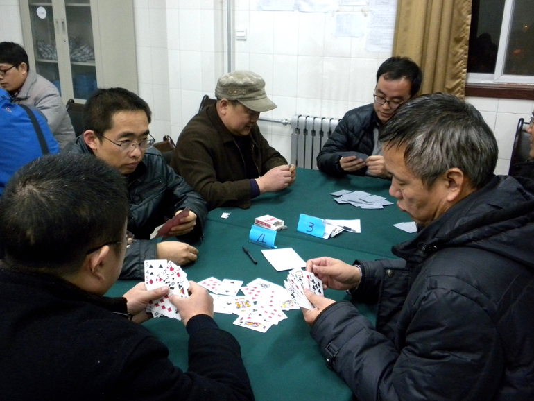 桥牌赛在14日上午举行。张卫国丶余非老师获得第一名,廖登洪丶郭长立老师获得第二名,党小虎丶唐亦川老师获得第三名。
