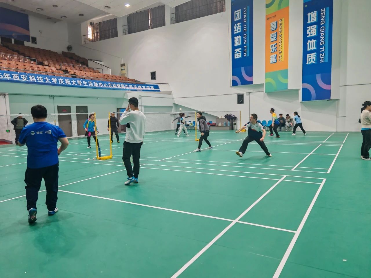 一元复始、万象更新,2025年1月1日,我们在雁塔校区北院大学生活动中心举行羽球飞扬庆元旦、师生携手共欢颜——白菜网大全论坛大学生活动中心启用暨师生羽毛球友谊赛。校党委副书记陈春林出席活动,党办、校办、7003全讯白菜网、国资处、人才办、后勤处、体育部等部门负责人,校羽毛球协会教职工以及校学生羽毛球队队员参加了活动。启动仪式由体育部负责人主持。