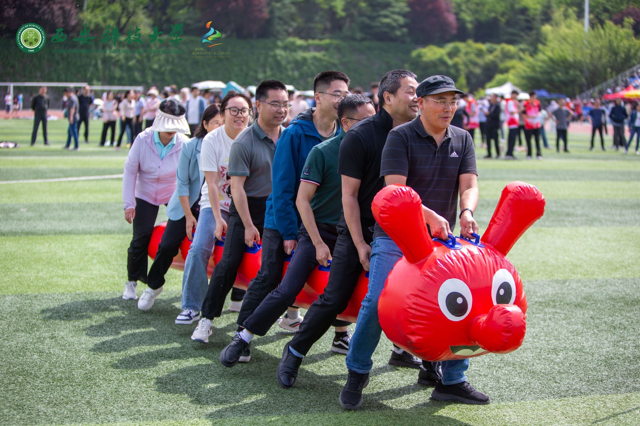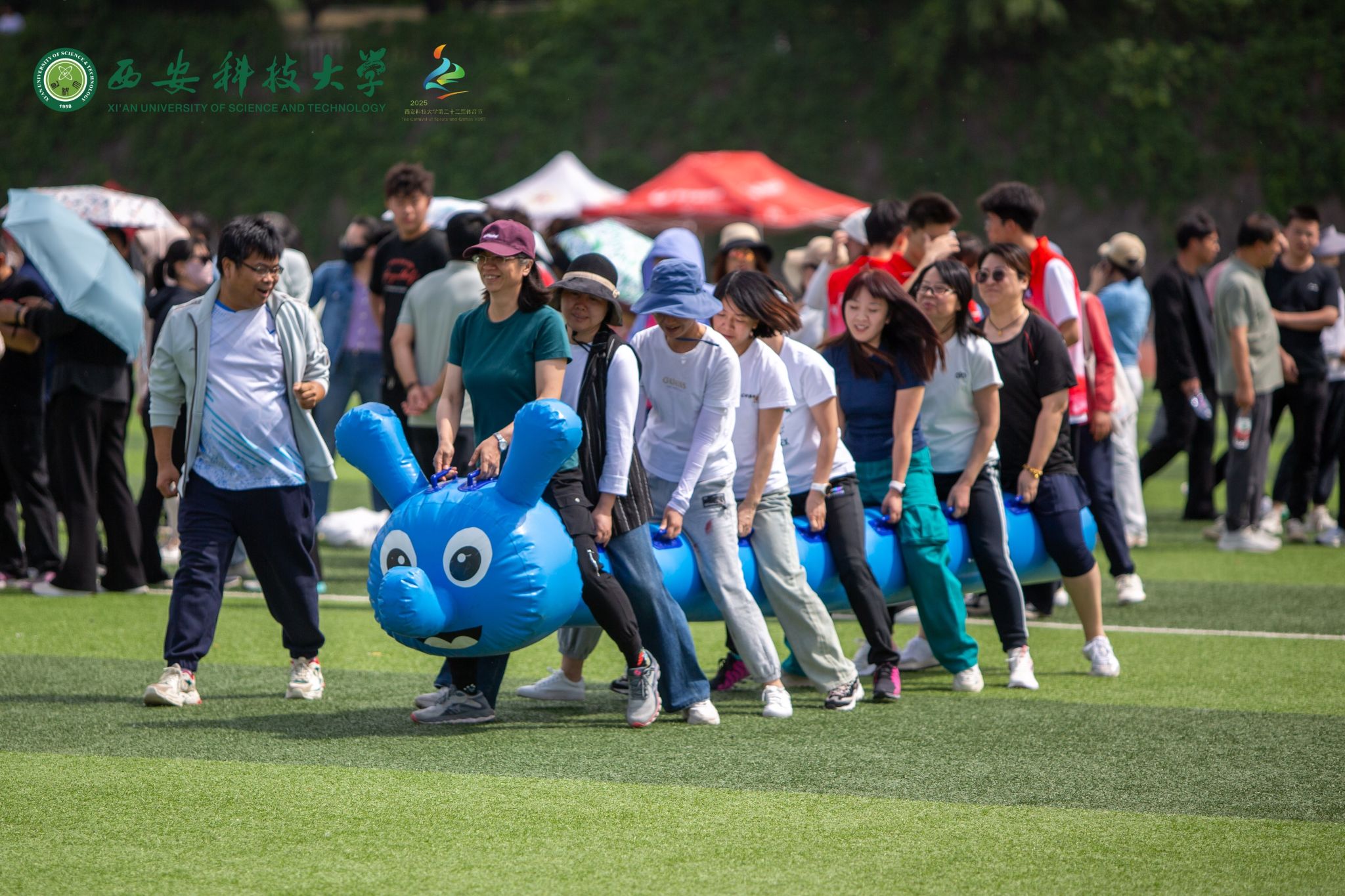 体育节期间组织开展了由地环学院分7003全讯白菜网承办的“三人四足接力跑”、电控学院分7003全讯白菜网承办的毛毛虫接力比赛等游艺活动。共有来自学校20个分7003全讯白菜网的600余名教职工参与。他们热情高涨、精神抖擞,发挥个人优势与特长,互相配合默契十足。观众们的欢呼声和加油声此起彼伏,活动现场气氛活跃,其乐融融。