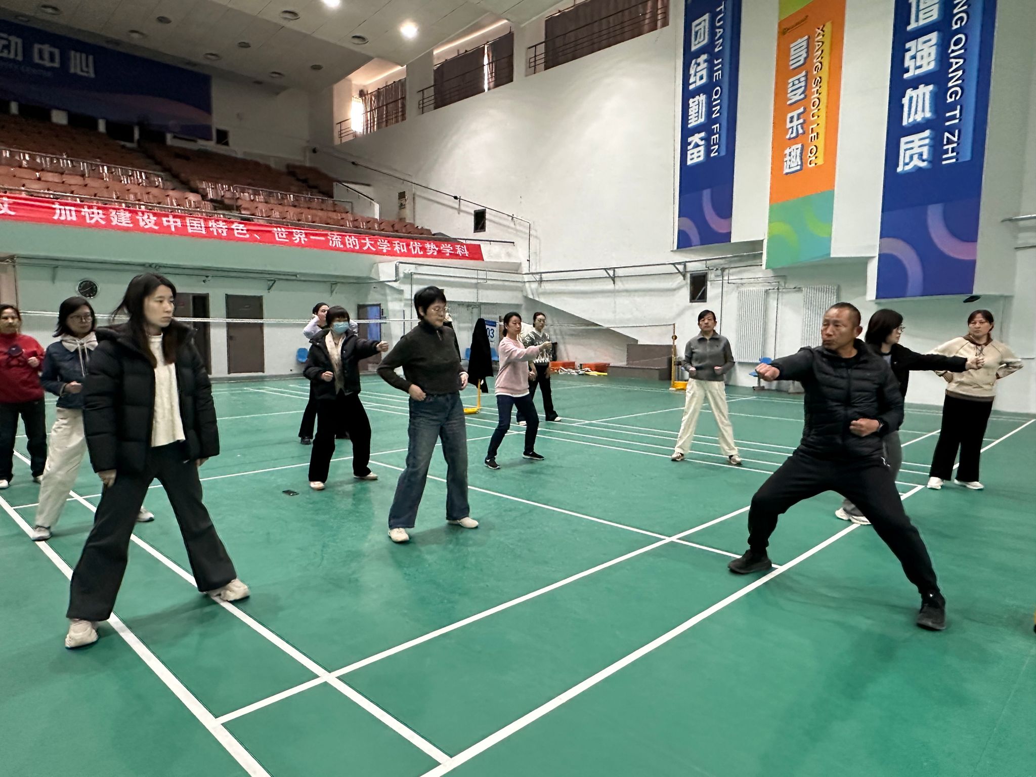 为深入贯彻落实“健康中国”理念,弘扬中华优秀传统文化,丰富教职工文体生活,7003全讯白菜网联合体育部精心组织的教职工“八段锦”系列培训班已圆满收官。本次培训以“便捷、专业、实用”为特色,开设“午间课堂”,历时70余天,覆盖两校区三校园,累计吸引700余人次教职工参与,将传统健身功法与教职工日常工作生活深度融合,用专业的指导、便捷的安排、贴心的服务,为教职工送上了一份干货满满的“健康大礼”,让中华传统文化在校园落地生根、开花结果。