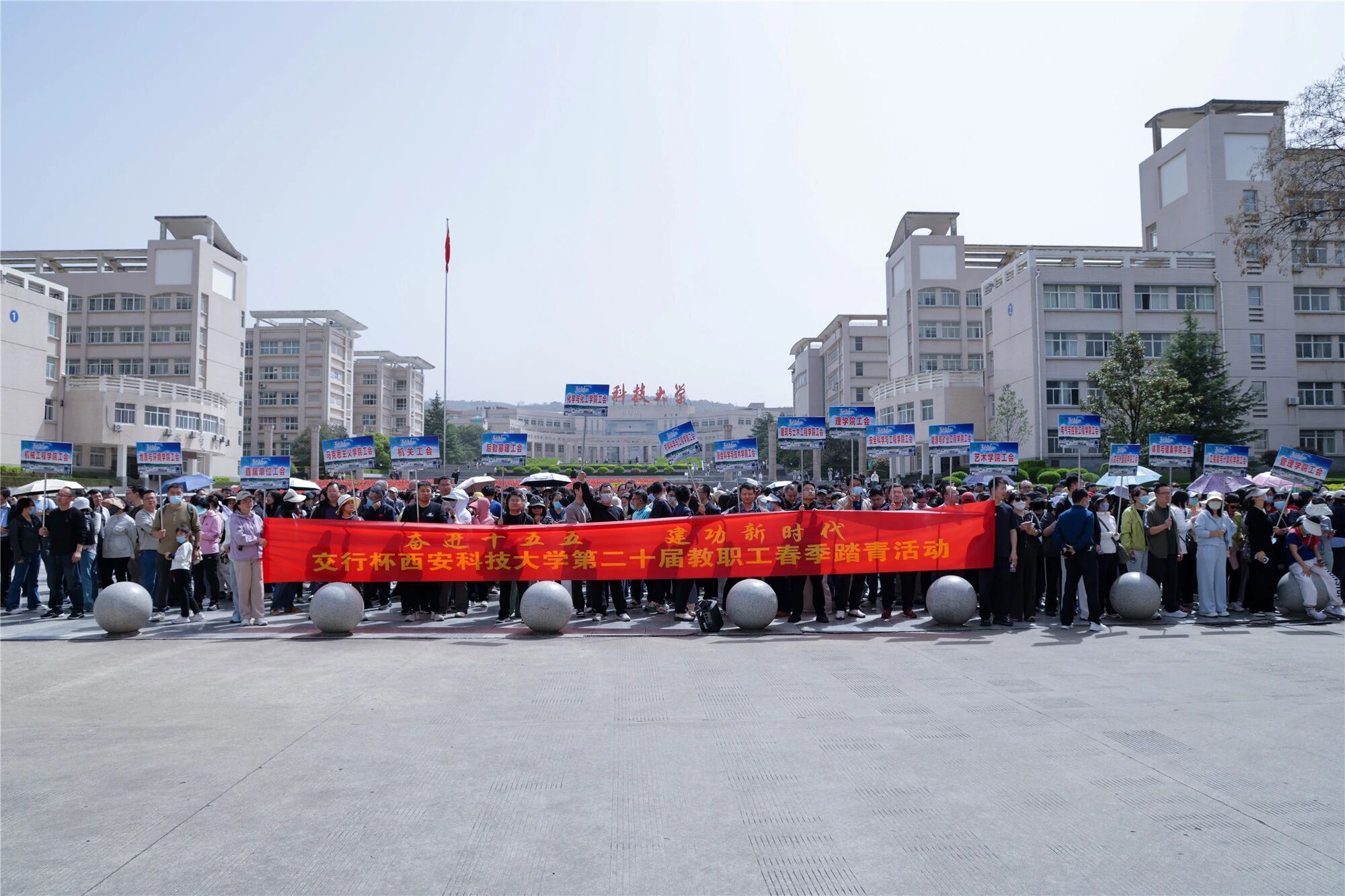春风送暖,草木葱茏,骊山叠翠,繁花似锦。为丰富教职工业余文化生活,弘扬健康向上的工作理念,4月3日下午,“奋进十五五 建功新时代”交行杯白菜网大全论坛第二十届教职工春季踏青活动在临潼校区骊山校园圆满举行。校党委副书记陈春林宣布活动开始,副校长李迎波全程参与,全校21个分7003全讯白菜网780余名教职工结伴健行,共赏芳菲,在自然美景中舒展身心、畅叙情谊。