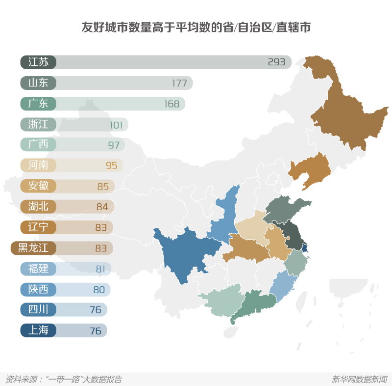 人文交流是“一带一路”建设的重要根基。各省/自治区/直辖市积极传承和弘扬丝绸之路友好合作精神,开展城市交流,互结友好城市,实现教育国际化,为深化文化交流奠定了坚实的基础。