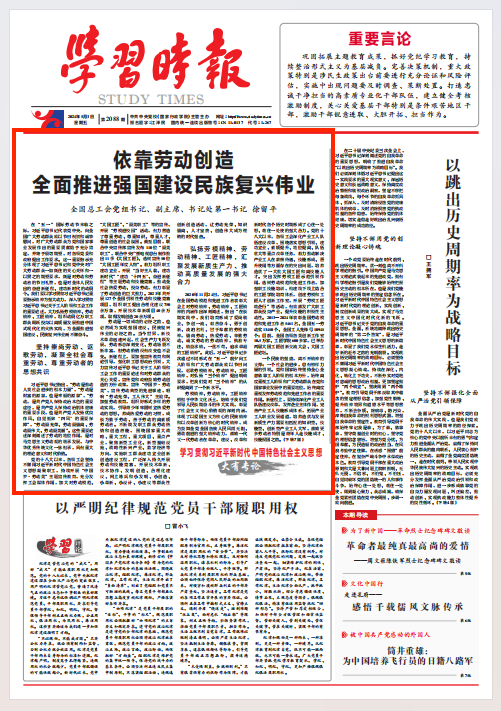 习近平总书记指出,“劳动是推动人类社会进步的根本力量”,“劳动是财富的源泉,也是幸福的源泉”,“劳动,是共产党人保持政治本色的重要途径,是共产党人保持政治肌体健康的重要手段,也是共产党人发扬优良作风、自觉抵御‘四风’的重要保障”,“劳动最光荣、劳动最崇高、劳动最伟大、劳动最美丽”。这些重要论述深刻阐述了劳动的地位作用,是对马克思主义劳动观的继承发展,与中华优秀传统文化一脉相承,具有重大的理论意义和时代价值。