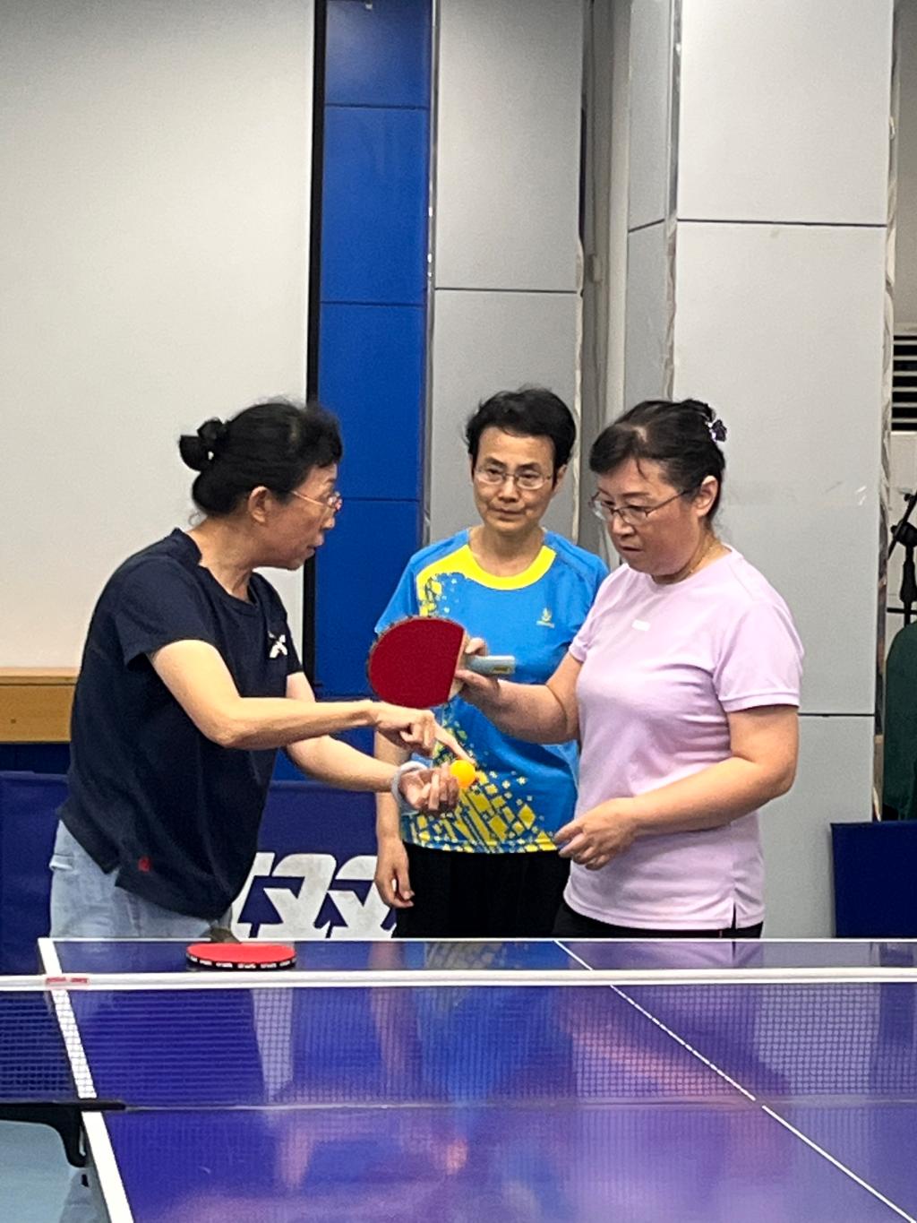 乒乓球赛场上教师们个个斗志高昂,气氛热烈,球台周围不时传来叫好声和欢呼声。比赛特邀体育部陈黎教练对时健、张燕清等老师进行了现场教学和指导,队员们纷纷表示受益良多。