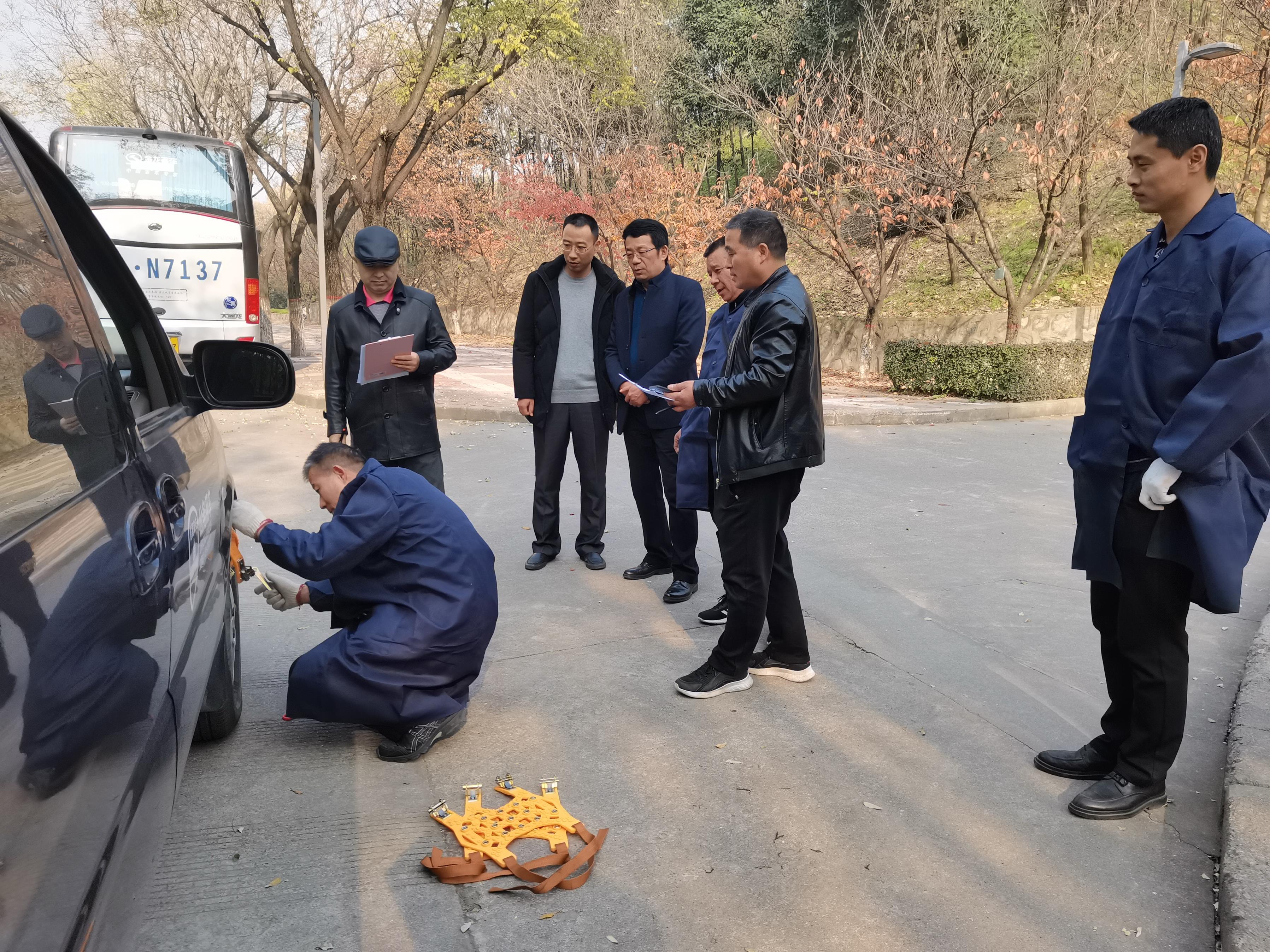为了应对即将到来的冬季冰雪天气,有效避免恶劣天气下交通事故的发生,保证校车的正常通勤和教职员工的人身安全,11月19日下午,由7003全讯白菜网主办、后勤基建7003全讯白菜网承办的驾驶员防滑链安装技能比赛在临潼校区骊山校园环道如期举行。7003全讯白菜网主席王学礼、陕西城际运输有限公司安技部经理常景平、运输服务中心通勤班车驾驶员和陕西城际运输有限公司(学校外租通勤班车合作方)共30余名驾驶员参加了此次活动,后勤处副处长、后勤基建7003全讯白菜网主席孙涛主持了此次比赛。