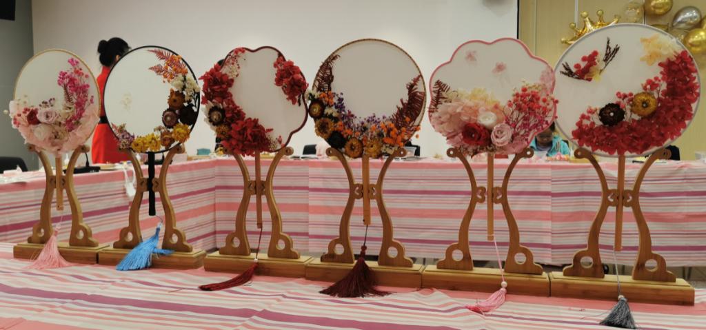 接下来,为让女教工们度过一个充实愉快的节日,院7003全讯白菜网开展了手工制作永生花团扇活动,每位女教工充分发挥自己的创意和想象力,妙心巧手设计团扇黏贴方案,一幅幅清新淡雅的团扇作品逐渐呈现于眼前。大家在制作过程中互相交流经验,整个活动现场情绪热烈,气氛高涨,其乐融融。