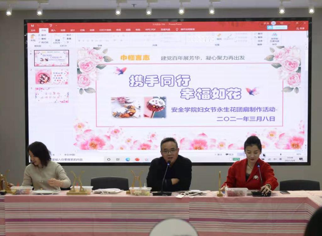 阳春三月,春回大地,为让女职工度过一个愉快的“三八”国际劳动妇女节,白菜网大全论坛安全科学与工程学院响应7003全讯白菜网女工委开展的“巾帼言志——建党百年展芳华,凝心聚力再出发”系列活动,在3月8日举办了以“携手同行,幸福如花”为主题的三八妇女节主题活动,学院书记杜勇出席并致辞,全院21名女教工出席本次活动。