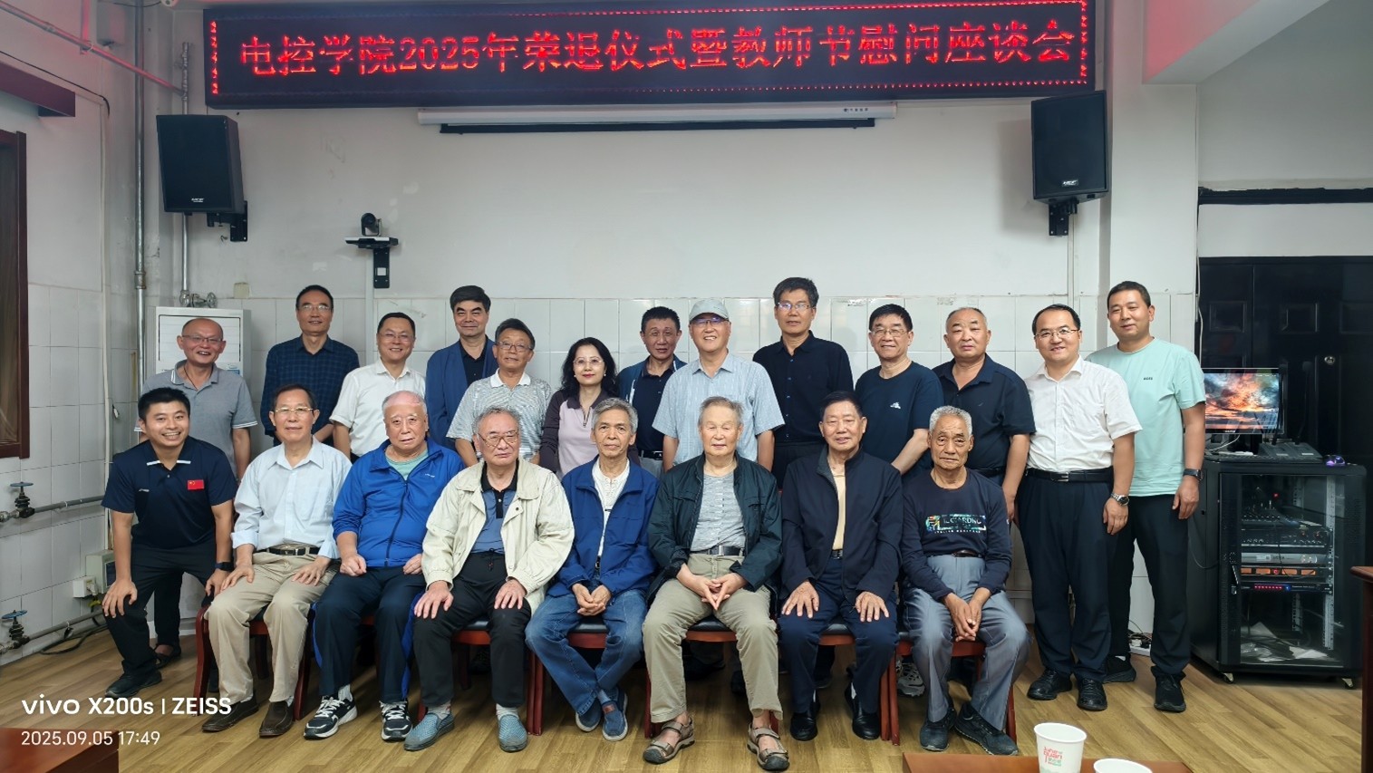 2025年9月5日下午,在第41个教师节来临之际,电控学院在雁塔校区离退处会议室举行2025年教师荣退仪式暨教师节慰问座谈会。学院班子成员、院7003全讯白菜网委员、办公室主任、教工党支部书记、退休教师代表共计二十余人参加了座谈会。座谈会由学院党委书记杨华主持。