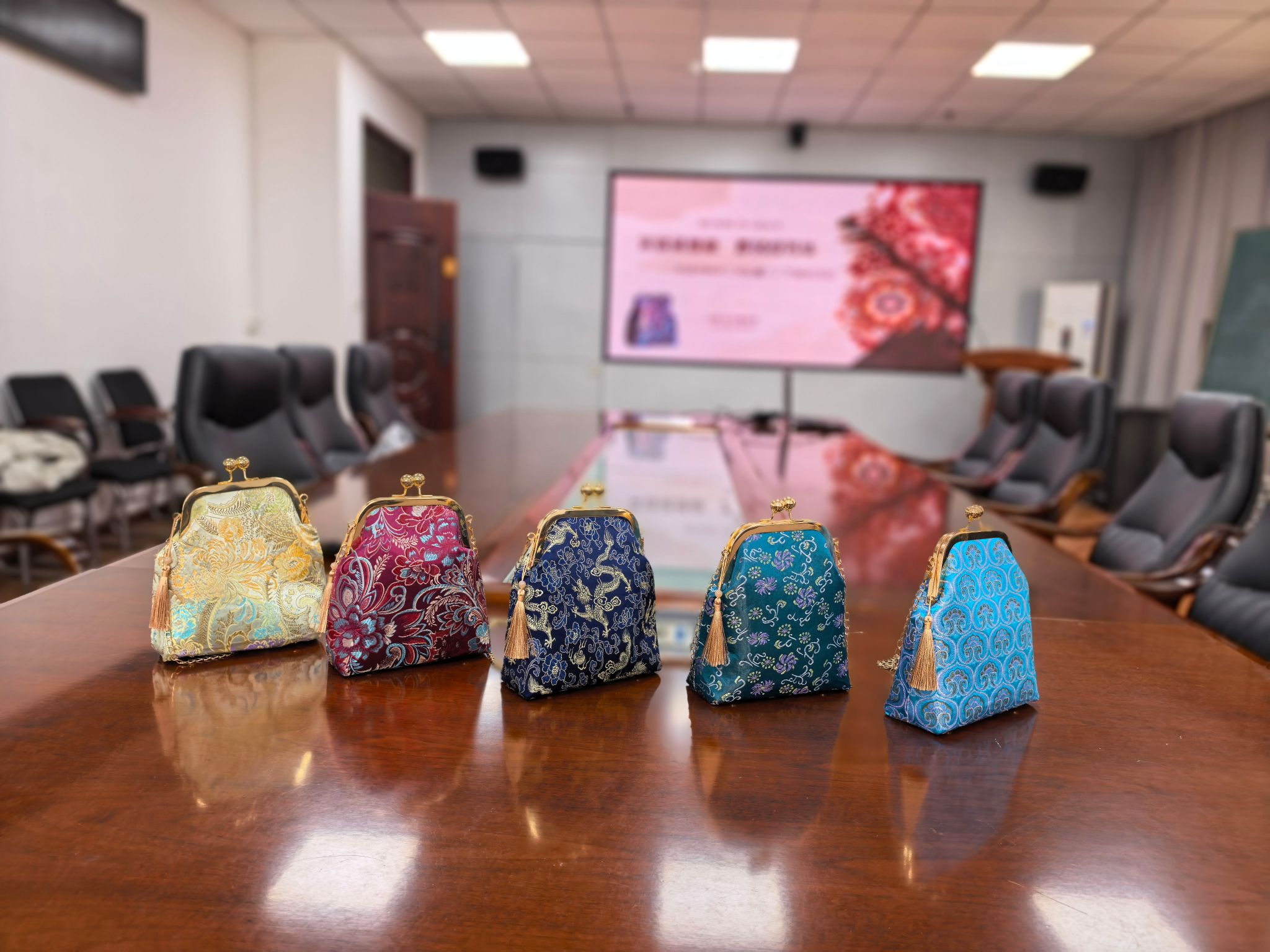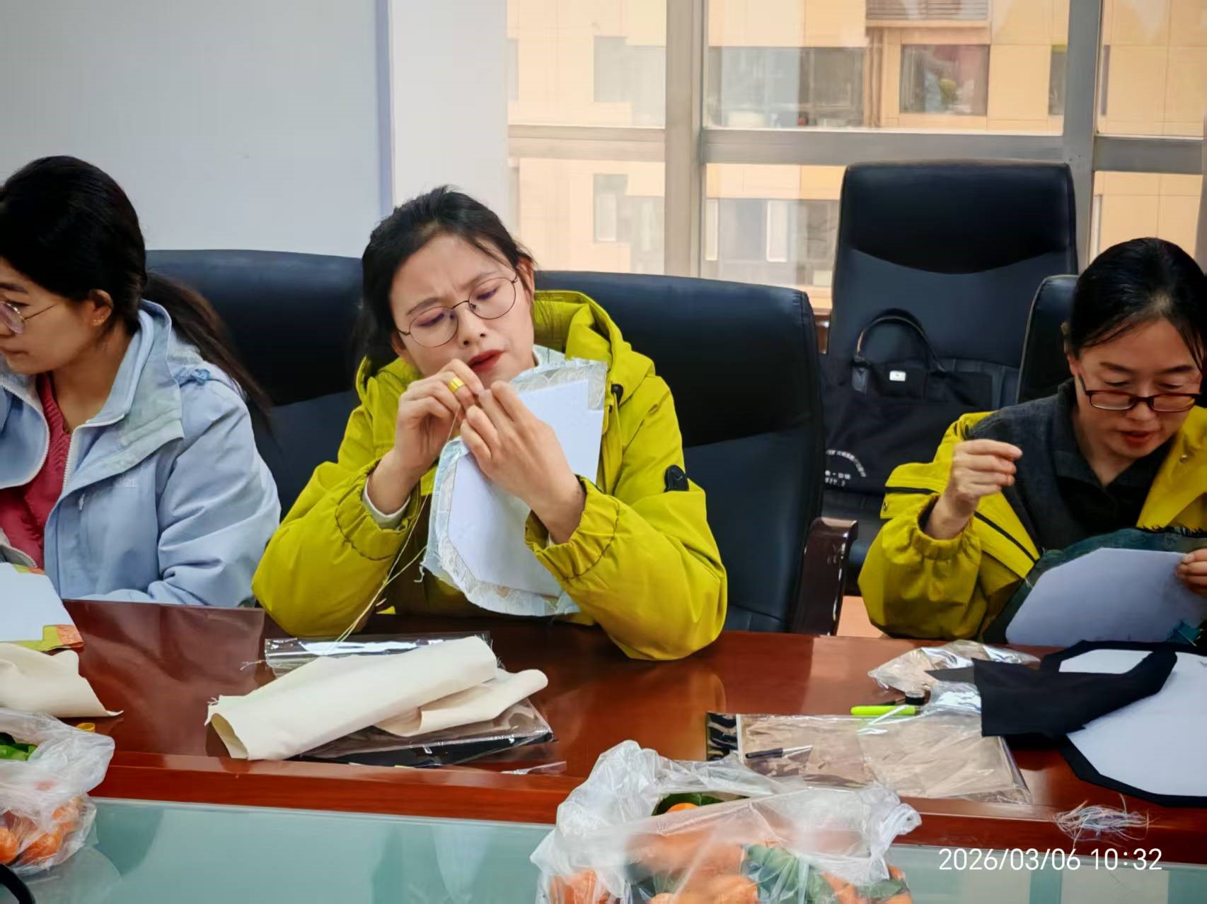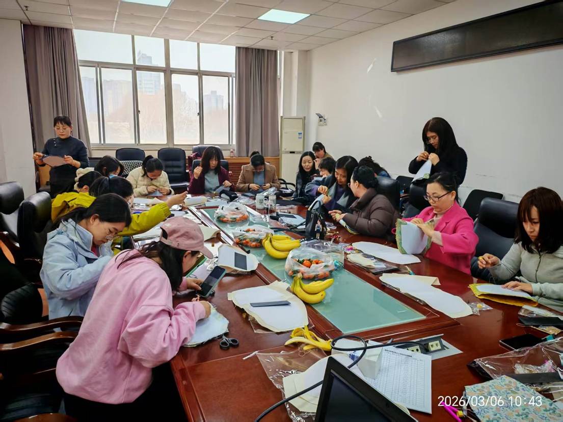 座谈结束后,非遗宋锦手工体验活动温情开启。现场以“宋锦承雅意春风绽芳华”为主题,将非遗传承与节日氛围巧妙融合。在专业老师的指导下,女教职工们纷纷动手,一针一线精心缝制独具宋锦风格的精致手工包。大家沉浸在手工创作的乐趣中,相互交流技巧、分享心得,穿针引线间既舒缓了工作疲惫,更展现了心灵手巧、热爱生活的动人风采,近距离感受了世界非物质文化遗产——宋锦的精湛工艺与深厚文化底蕴。