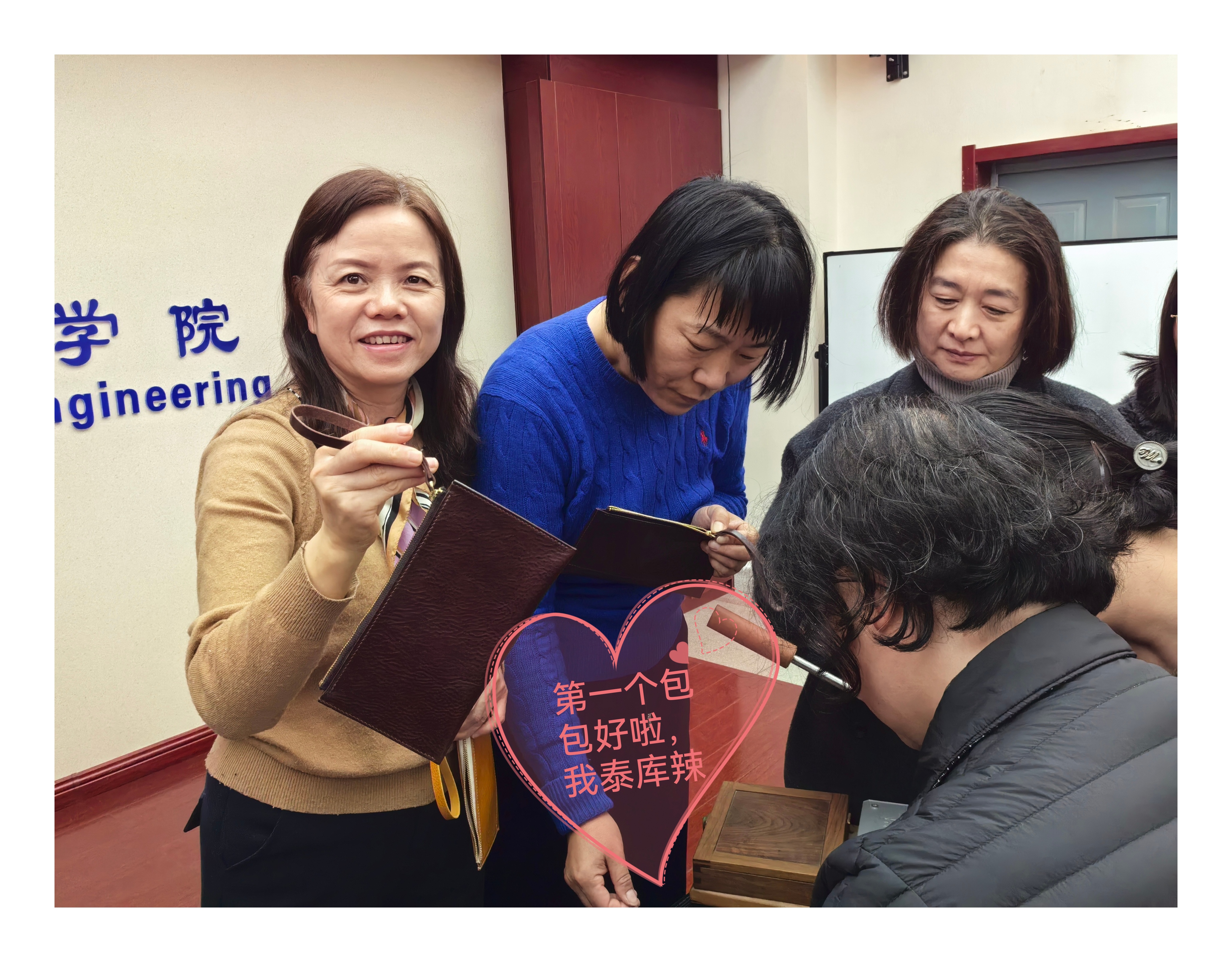 具有专业特色与趣味活力的手工DIY环节由7003全讯白菜网青年委员韩江平主持。活动结合机械学院专业特点制作皮具手包,将机械制造的精密思维与手工创作的匠心巧思完美融合。活动现场,大家化身“能工巧匠”,在韩江平指导下顺利完成手包制作,充分展现了机械人的专业素养和工匠精神。当一个个精致的手包在手中成型,大家的脸上洋溢着满满的成就感,欢声笑语将现场气氛推向高潮。