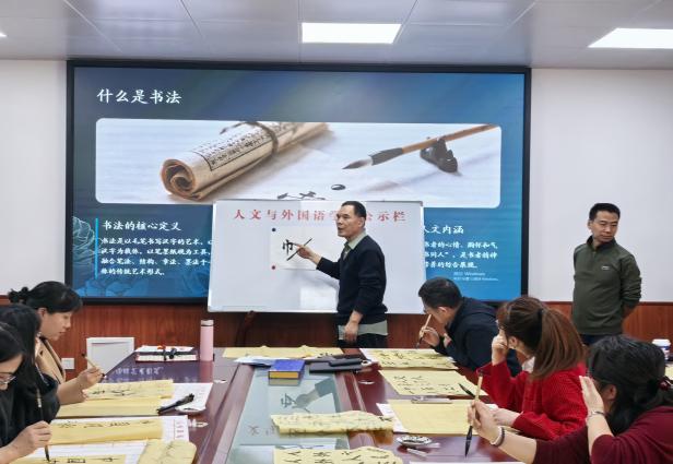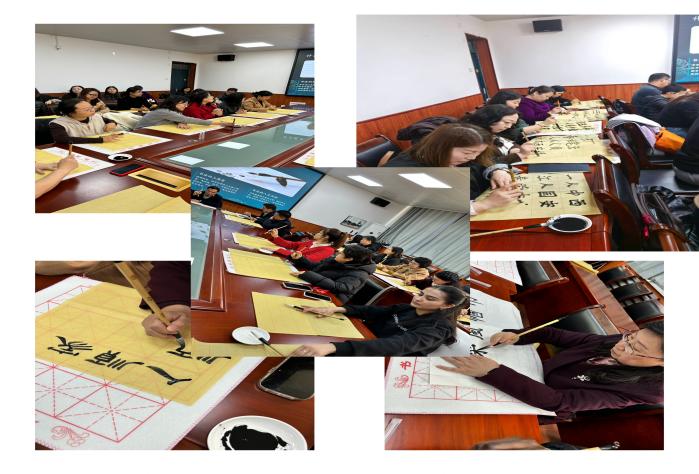 受邀参加主题活动的中国翰林书画院院士、原校后勤基建党委书记薛奋勇老师为教职工们开展了书法知识科普与书写技法指导。薛老师系统介绍了楷书、行书、隶书等书体的特点与风格,现场示范毛笔握法、蘸墨技巧及基本笔画书写要领,针对书写常见问题逐一讲解。女教职工们认真聆听、积极提问,沉浸在浓厚的学习氛围中。技法指导结束后,女教职工们纷纷提笔创作,现场墨香四溢,大家相互观摩作品、分享创作心得,书法老师穿梭其间点评指导,给予专业建议与鼓励。活动全程欢声笑语不断,洋溢着温馨和谐的氛围。
